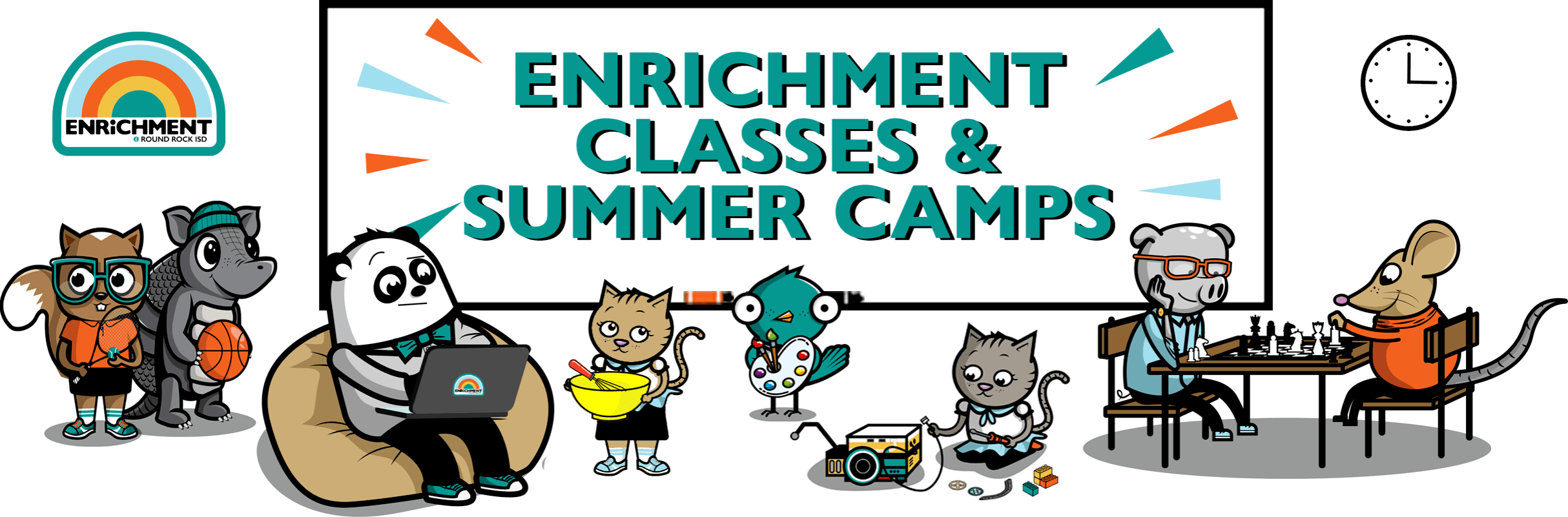 Round Rock ISD After-School Enrichment Classes Interactive and engaging classes for students in grades K-12Check the enrichment calendars for class datesCheck your current enrollmentsReview the Registration and Refund PolicySubmit a Cancelation or Change Request Form Summer Camp Registration Is Now Open!> Explore RRISD Enrichment Summer Camps> Explore Kidventure Full-Day, Five-Day Camps> Explore YMCA Full-Day, Five-Day CampsAdditional teacher-led camps will open in March! Important After School Enrichment Registraton & Cancellation Deadlines« Registration is now closed for classes starting in January. « Please note that no exceptions will be made for late registrations.« Session 2 registration is still open on some campuses.Some campuses do not offer fee-based after school enrichment classes. Please contact your campus for more information.Elementary students may only register to attend in-person after school enrichment classes on their home campus.Submit the Class Cancelation Request FormReview the Refund Policy and cancelation deadlinesFinal payment for split payment registrations is processed two weeks before class starts. ▼▼▼▼▼▼▼▼▼▼▼▼▼▼▼▼▼▼▼▼▼▼▼▼▼▼▼▼▼▼▼▼▼▼▼▼▼▼▼▼▼▼ Summer Camp Dates:May 26-29 (coming soon)June 1-4June 8-11June 15-18July 6-9 (coming soon)July 13-16July 20-23June 2 - July 24 (full day, five day) Enrichment camps offered Monday-Thursday:Morning camps: 9:00 a.m. - 12:00 p.m. Afternoon camps: 12:30 p.m. - 3:30 p.m. Full day camps: 9:00 a.m. - 3:30 p.m. Camp Locations:England Elementary (June & July)Pearson Ranch Middle (June & July)Herrington Elementary (June) Sommer Elementary (June & July) Round Rock ISD Teacher Led Camps (opening soon) Kidventure Camps - offered Mon-Fri at Sommer Elementary YMCA Camps - offered Mon-Fri at four RRISD campuses Kidventure offers weekly full-day camps for students in Pre-K to 5th Grade at Sommer ElementaryKIDVENTURE CAMP ROUND ROCKSommer ElementaryYMCA offers weekly full-day camps for students in K to 5th Grade at multiple area locationsYMCA SUMMER CAMPSDouble File Trail, Deep Wood, Forest Creek, Laurel Mountain, Spicewood Browse summer camps by category. Important Information Students may only register for after-school enrichment classes held at their home campus during the school year.Online classes and summer camps are open to all students — you do not need to be enrolled in Round Rock ISD to participate.Review our Registration and Refund Policy and cancelation deadlines before completing your registration.To be eligible for a refund or voucher, the Cancelation or Change Request Form must be submitted before the posted deadline.After creating an account, add your selected class(es) to your cart and complete checkout. A confirmation email will be sent from roundrockisd@ce.eleyo.com upon successful registration. Be sure to check your spam or trash folders for any communication from instructors.Students who qualify for free or reduced lunch may be eligible for scholarships or discounts. To apply, complete the Scholarship Request Form.Round Rock ISD employees and their dependents are eligible for an employee discount, which must be applied at the time of registration.If a class is no longer listed online, it has either been canceled or the registration deadline has passed.Classes and camps must meet minimum enrollment at least one week before the start date. If a program is canceled due to low enrollment, you will be notified by email and receive a full refund.To use an eligible voucher:1. Complete your online registration and payment.2. Submit the Voucher Refund Request Form after registering.3. You will receive a confirmation once the eligible voucher amount has been reimbursed.Final payment is due two weeks before the class start date.Revisar la información de registro en español.Click here to translate this page into another language.