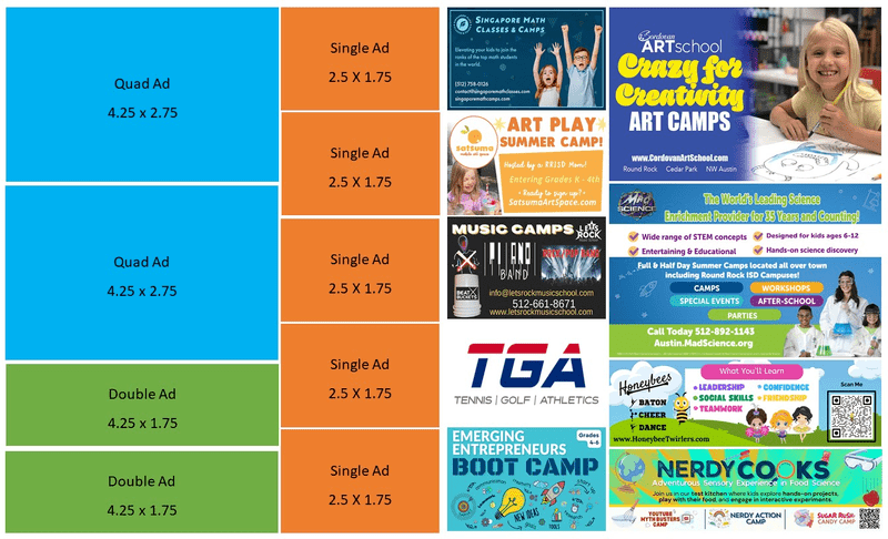 « Double Ad Space (4.25" wide x 1.75" tall) – $550 (Limit 4)