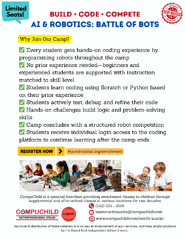 For questions about this specific class, please contact Northaustin@compuchild.com