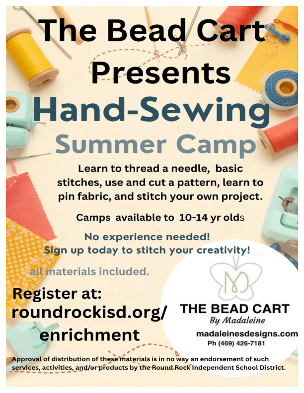 The learner will learn to practice pinning a pattern, identify seam allowance, learn to use a measuring tape, cut out pattern pieces, trace the seam allowance with chalk on fabric, and hand sew pieces together. The learner will stuff their project and close it. The learner will complete a sewing project using running stitch, back stitch, blind stitch and learn to knot thread.