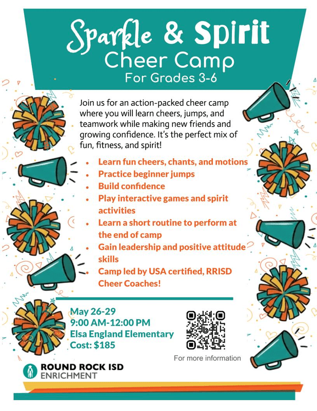 For our young interested cheerleaders, come join our middle school coaches to learn the fundamentals of cheer, learn a routine, and have a parent show-off at the end.