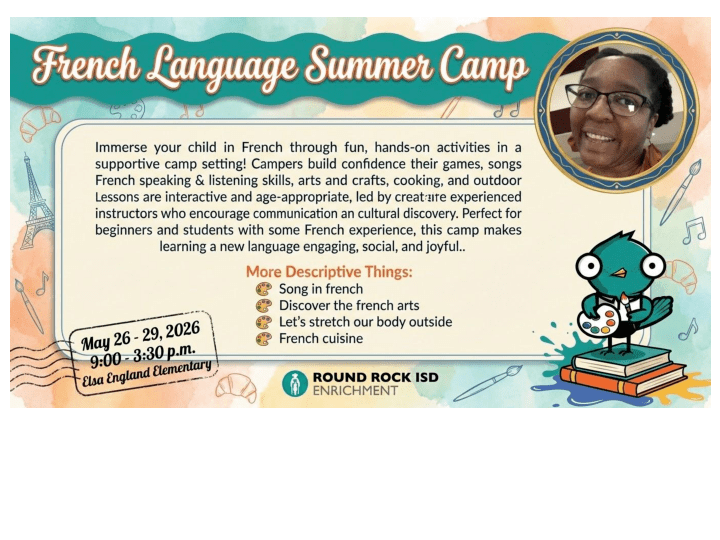 Immerse your child in French through fun, hands-on activities in a supportive camp setting! Campers build confidence in their French speaking and listening skills through games,songs,stories, arts and crafts, cooking, and outdoor play. Lessons are interactive and age-appropriate, led by experienced instructors who encourage communication and cultural discovery. Perfect for beginners and students with some French experience, this camp makes learning a new language engaging,social, and joyful.