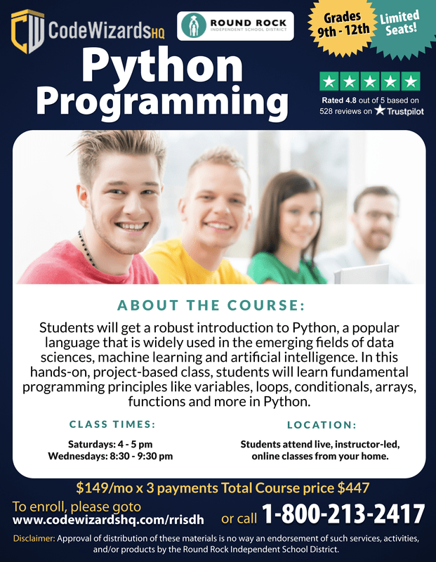 Python Programming (Gr. 9-12) by CodeWizardsHQ - $149 per month