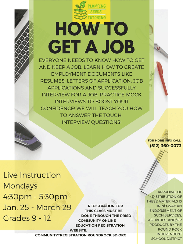 How To Get A Job: Resume Writing, Networking, Interviewing, & More (Gr. 9-12) by Planting Seeds Tutoring *Online Class